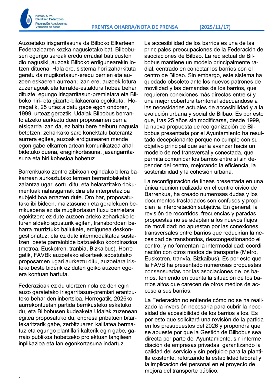 La plataforma Autopista Kanpora ha remitido en las últimas semanas varios escritos tanto a la Diputación Foral de Bizkaia como al Ayuntamiento de Bilbao, solicitando aclaraciones respecto a las declaraciones realizadas por el diputado de Infraestructuras, Carlos Altzaga, quien anunció a principios de noviembre retrasos en la redacción del proyecto la variante y un “deslizamiento hacia 2026 del dinero consignado para 2025”.